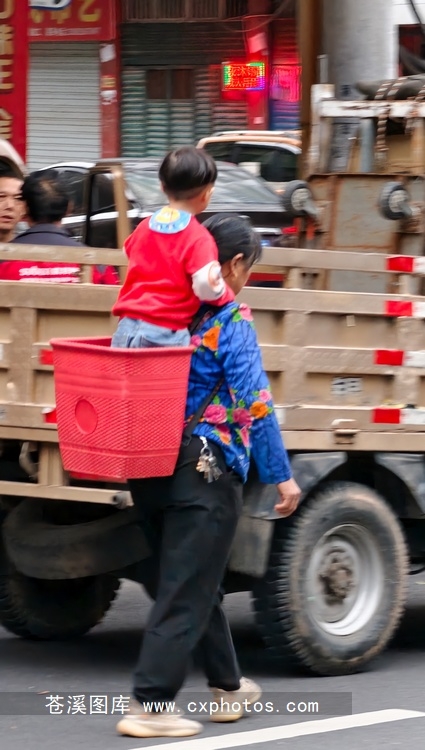 20251014苍溪县城白鹤行走背小孩的女子