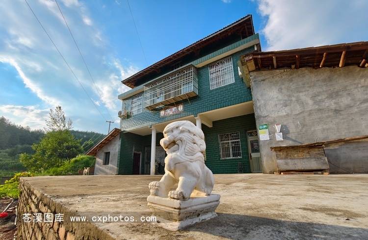 20250819苍溪东溪镇陈干村陈干坟民居门前的石狮