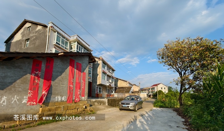 20250819苍溪东溪镇陈干村陈干坟民居墙上的婚礼条幅