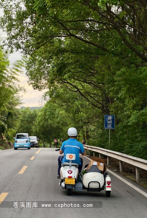 20250811苍溪陵江镇麻岭社区麻岭水库公路上的偏三轮01