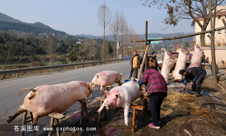 20180111苍溪陵江镇回水村公路边杀年猪03