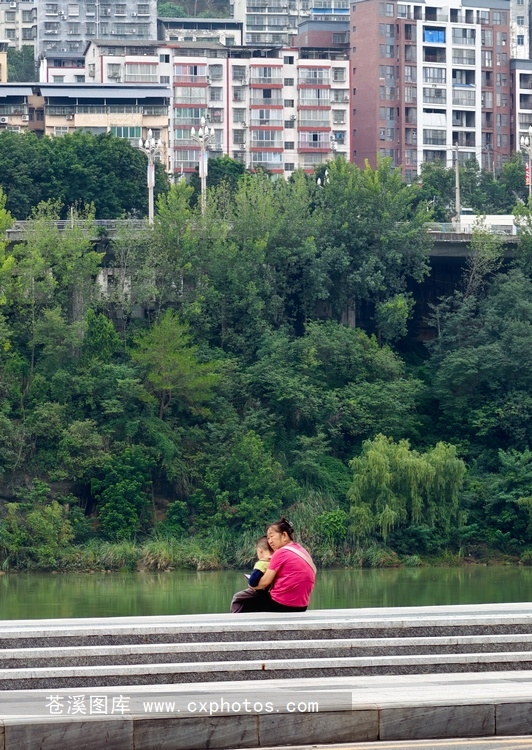 20250927苍溪县城嘉陵路休闲的母子