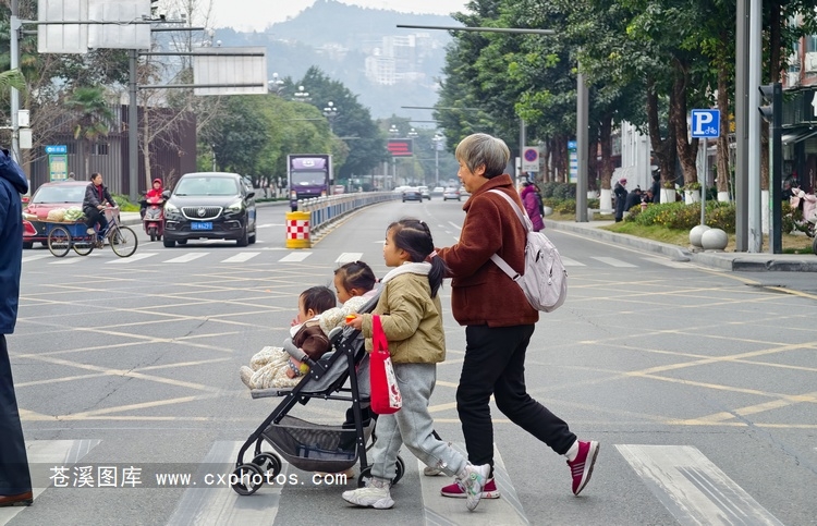 20251228苍溪县城滨江路刘家巷口过斑马线的的人