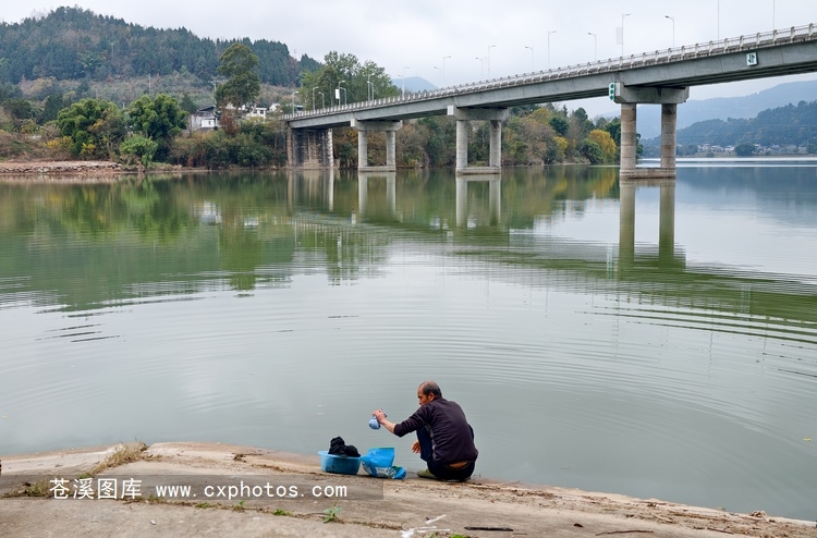 20251221苍溪元坝镇中土场老码头上洗衣服的男子